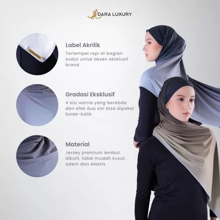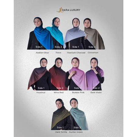 Satu pashmina, empat tampilan memukau. Kreasikan berbagai gaya elegan dengan variasi gradasi warna berbeda di setiap sisinya.